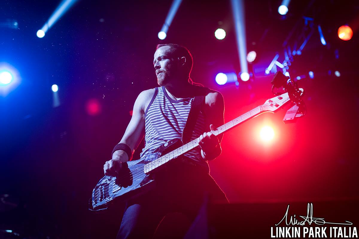 “Milan this is fucking beautiful, thank you very much!” il commento di Mike al termine del brano ed in apertura del pezzo successivo: una versione accorciata di A Light That Never Comes che, vuoi per l’emozione, il momento ed il “fomento” creato a quel punto, ha coinvolto e preso davvero tutti nel pit, trascinando e convincendo con tanto di pioggia di glowstick che ha continuato imperterrita (ed un gruppo coperto di bastoncini colorati, schivati da grandi professionisti fortunatamente). Seguono Lost in the Echo (versione accorciata) ed un “pezzettino” di Crawling prima che il sestetto californiano vesta i panni della “Transformers Band” con New Divide (versione accorciata) e What I’ve Done eseguita per intero con un eccellente assolo esteso di Brad Delson a sottolineare la grande performance. Chester accompagna come un direttore d’orchestra il coro dei fans sul “na na na” in chiusura, quasi a volerselo godere tutto prima di ringraziare il pubblico di Milano per essere uno dei migliori della sua vita.