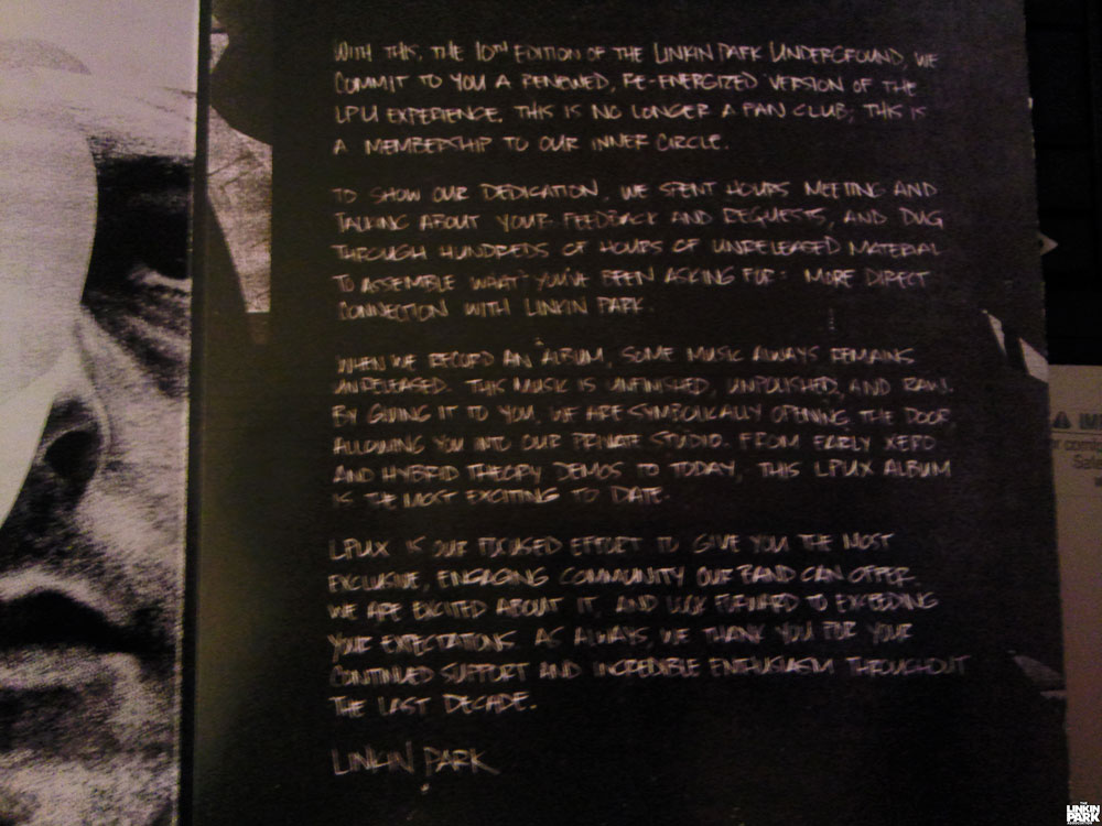 Ecco scartato, aperto e autografato, il nuovo LPUX, CD di Linkin Park Underground, fanclub ufficiale della band che quest’anno è arrivato alla sua decima edizione.