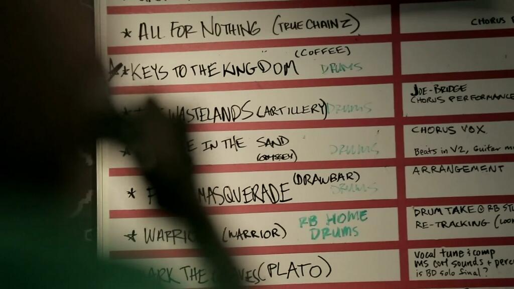 A circa 30 secondi dall’inizio del video, è possibile notare alcuni titoli di lavorazione delle nuove canzoni che faranno parte del sesto album del gruppo previsto nel mese di giugno di quest’anno.