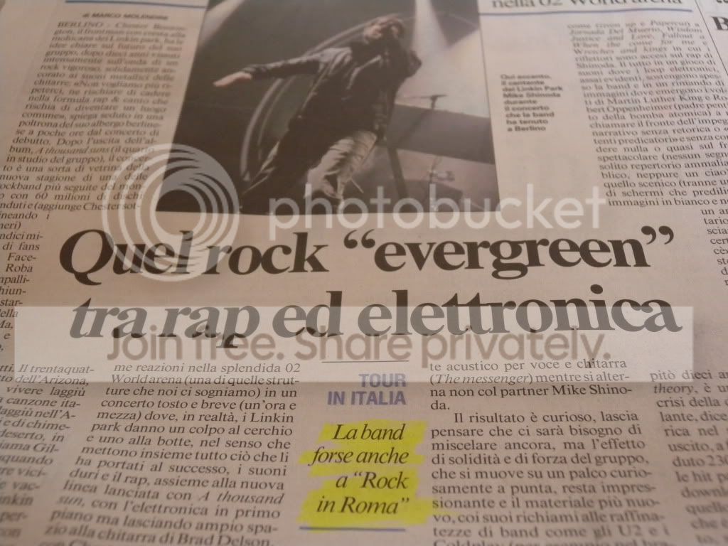Insomma, non si sa se gli organizzatori del Rock in Roma ci hanno dato ascolto, o se la redazione de Il messaggero segua le vicende dei Linkin Park da questo portale.
