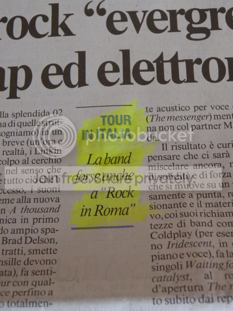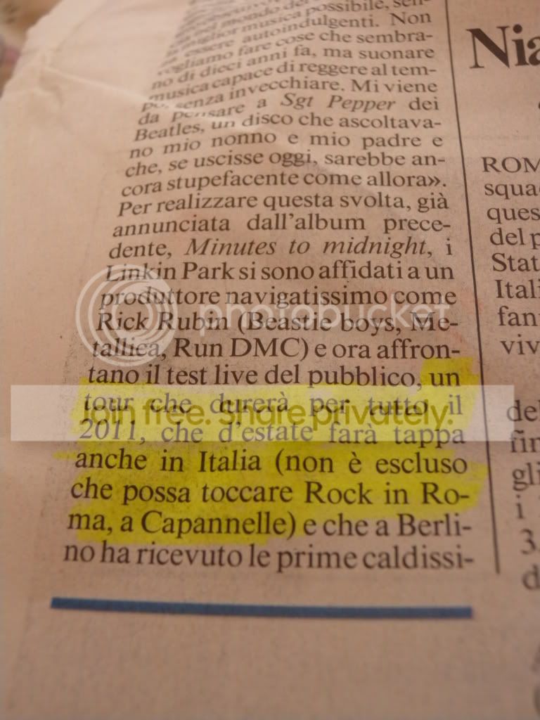 Ciò che però scuote più di tutto in questo articolo è che, in seguito alle dichiarazioni di Chester Bennington a Berlino qualche giorno fa, oramai viene data quasi per CERTA una data italiana del tour nel 2011.