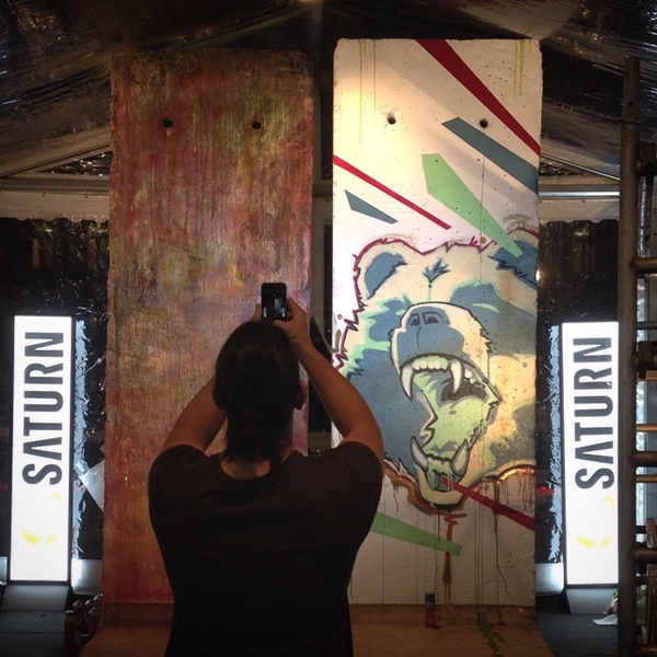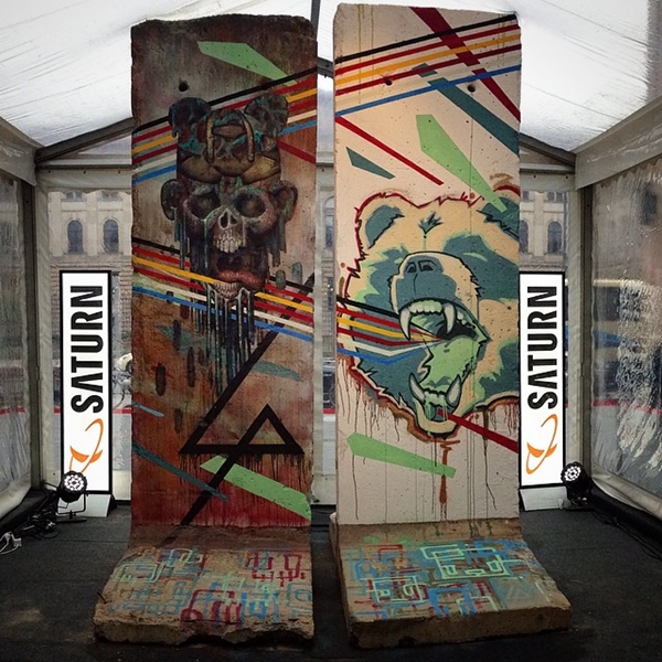 Si tratta di due blocchi del Muro di Berlino, dipinti da Mike & Joe direttamente sotto gli occhi dei fan.